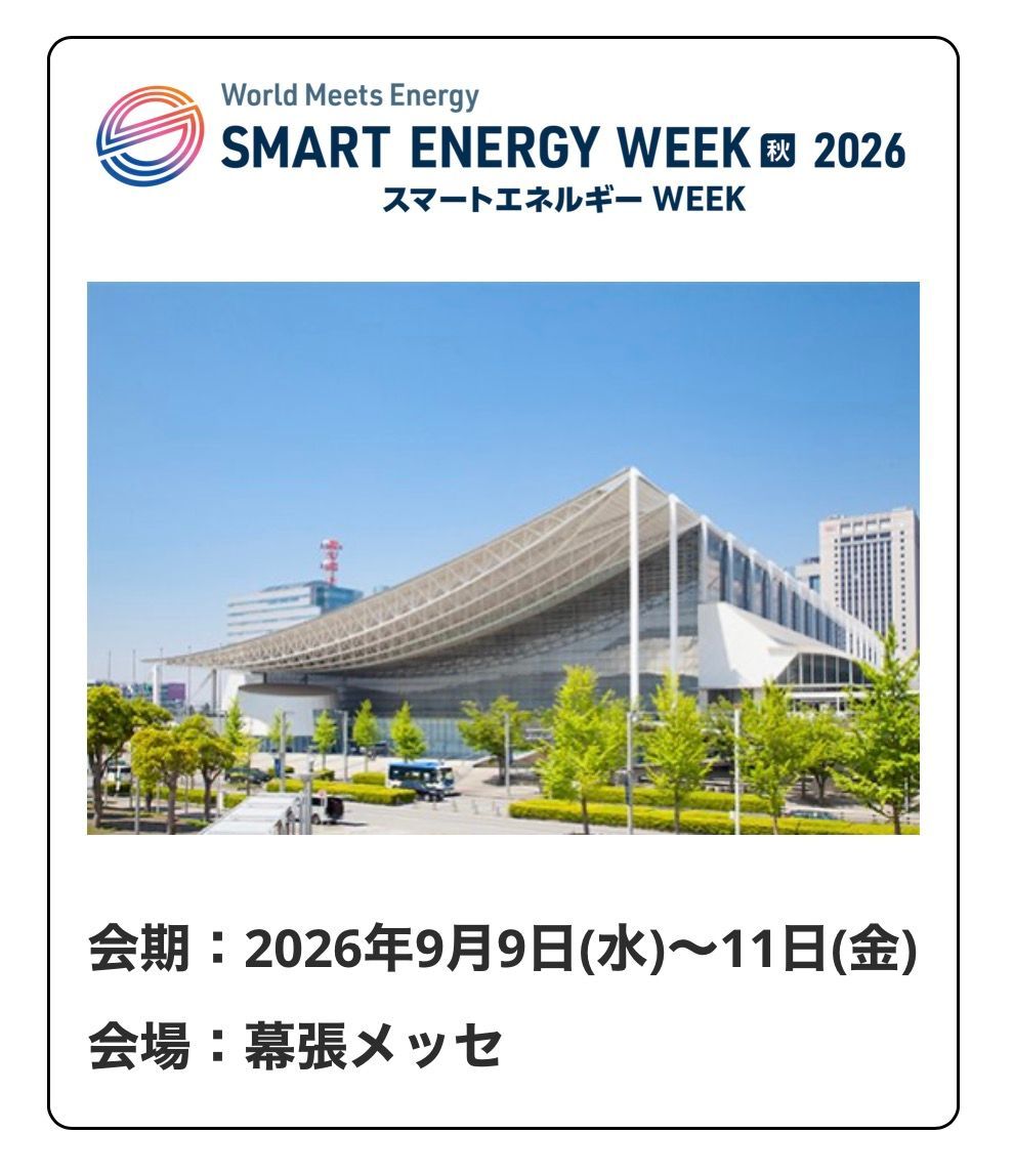 2050年カーボンニュートラル実現に向け、ますますの普及が期待される再生可能エネルギー。SMART ENERGY WEEKは、春・秋・関西の年3回開催される世界最大級の新エネルギー総合展です。