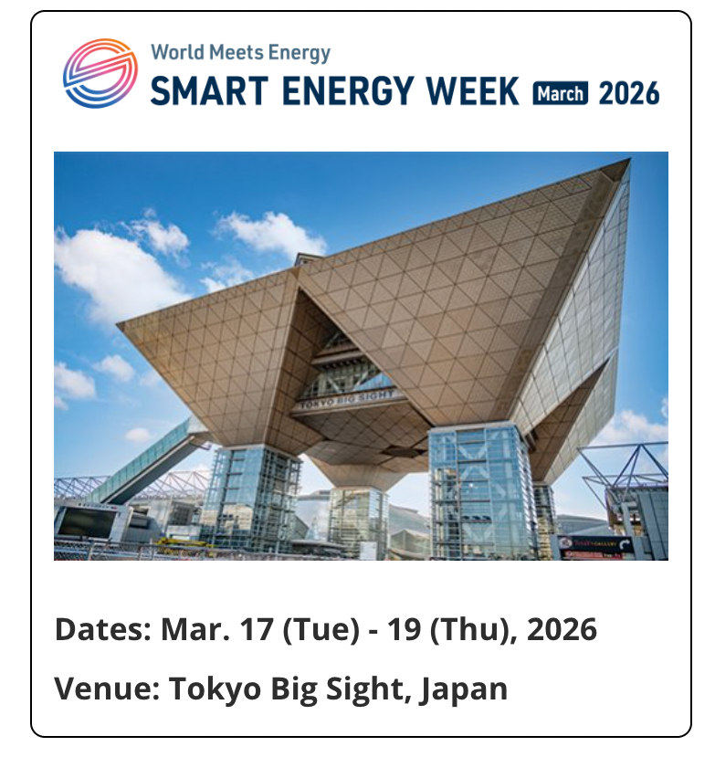 Smart energy week gathers a full range of renewable energy technologies such as hydrogen and fuel cells, solar power, rechargeable batteries, smart grids, wind power, biomass, zero-emission thermal power generation, etc.